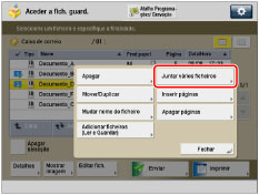 Selecione a caixa de correio pretendida → selecione os ficheiros pretendidos pela ordem em que pretende juntá-los → carregue em [Editar fich.].