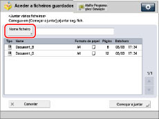 Introduza um nome de ficheiro → carregue em [OK] → [Começar a juntar].