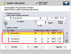 Se selecionar vários ficheiros e carregar em [Inserir páginas], o ficheiro selecionado (realçado) é aquele que é inserido. |