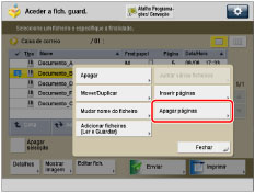 Se selecionar vários ficheiros e carregar em [Apagar página], o ficheiro selecionado (realçado) é aquele cujas páginas são apagadas. |