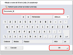 Introduza um nome de ficheiro → carregue em [OK] → [Começar a inserir].