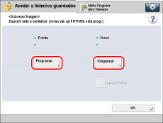 <Verso> só pode ser selecionada para uma impressão frente e verso. Para especificar as mesmas programações do que <Frente> para <Verso>, carregue em [Igual à frente]. |