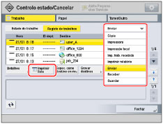 Carregue em [Trabalho] → [Registo de trabalhos].