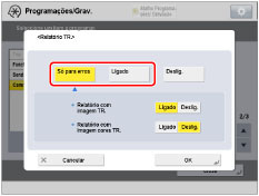 Se quiser imprimir parte do documento enviado no relatório TR. de envio, carregue em [Ligado] para <Relatório com imagem TR.>.