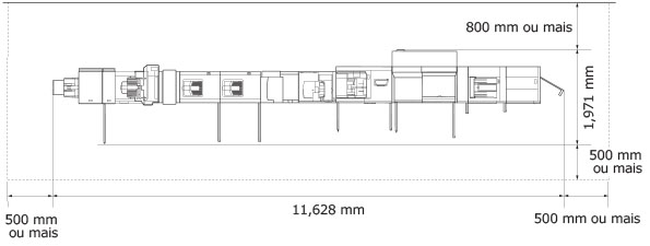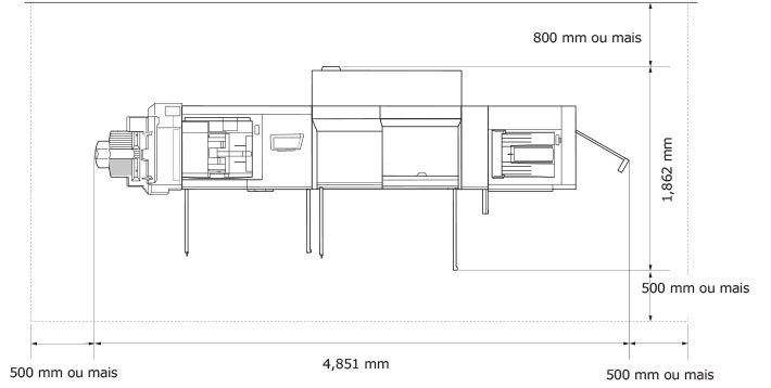 Deixe espaço suficiente dos dois lados da máquina para que possa trabalhar sem restrições.