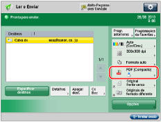 Carregue em [PDF] para <Formato fich.> → [Compacto] → [OK].