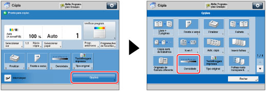 Se alterar a densidade em [Opções], o ajuste da densidade durante a cópia pode não ter qualquer efeito no resultado final. |
