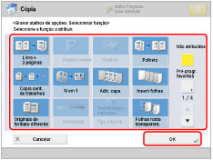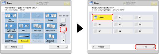 Pode voltar a chamar as programações sem apresentar um ecrã de confirmação a partir do ecrã Funções de cópia básicas.