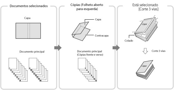 Especificar o formato de finalização | Corte de 3 vias | 364,0 mm até ao dobro do formato do documento principal + 30,5 mm (364,0 mm a 487,7 mm) | Largura do formato de finalização + 13,0 mm a 79,0 mm (257,0 mm a 330,2 mm) |