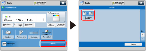Se programar um formato de papel diferente para as guardas anterior e posterior ou para folhas inseridas, os formatos de papel das outras funções são automaticamente alterados para o novo formato de papel. No entanto, o facto de alterar a origem do papel relativamente a uma função para uma origem com o mesmo formato de papel não altera as programações das outras funções. Antes de puxar papel a partir da Document Insertion Unit-N, coloque-o no Document Insertion Unit-N e especifique o formato do papel. Para puxar papel a partir da Document Insertion Unit-N, selecione [Insersor de folhas 1] ou [Insersor de folhas 2]. Se puxar papel a partir da Document Insertion Unit-N para o trabalho em curso, carregue em [Alterar Inser.1 pap.] ou [Alterar Inser.2 pap.] para selecionar papel para as folhas inseridas. |