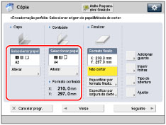 Especificar por formato finaliz. | Corte na vertical | 138,0 mm a 216,0 mm | 257,0 mm a 297,0 mm |