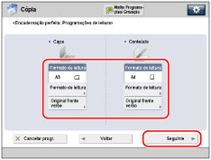 Se puxar papel para a capa a partir da Document Insertion Unit-N, não pode especificar programações de leitura para a capa. |