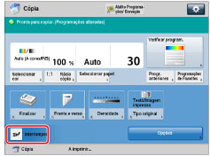 Não pode fazer cópias de interrupção se houver algum trabalho de cópia de interrupção a ser processado ou à espera de ser processado. Para cancelar o modo Interromper, carregue em [Interr.]. |