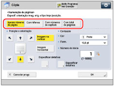 Se utilizar [Com total de páginas] com o modo Folheto, a máquina imprime automaticamente o número total de páginas. |