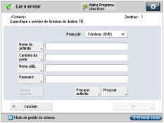 Pode introduzir até 128 carateres alfanuméricos para o [Nome do anfitrião] no painel de controlo. Pode ainda introduzir até 255 carateres alfanuméricos para o [Caminho da pasta]. Especifique as programações do servidor dentro do limite de caracteres. Se alterar o idioma do visor do painel digital, o [Nome do anfitrião] e o [Caminho da pasta] poderão não ser apresentados corretamente ou poderá não conseguir navegar nos diretórios. Se o idioma do visor do painel digital for diferente do computador utilizado como browser principal, o [Nome do anfitrião] e o [Caminho da pasta] poderão não ser apresentados corretamente ou poderá não conseguir navegar nos diretórios. |