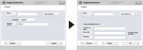 Pode introduzir até 128 carateres alfanuméricos para o [Nome do anfitrião] no painel de controlo. Pode ainda introduzir até 255 carateres alfanuméricos para o [Caminho da pasta]. Especifique as programações do servidor dentro dos limites de caracteres. Se alterar o idioma do visor do painel digital, o [Nome do anfitrião] e o [Caminho da pasta] poderão não ser apresentados corretamente. Se o idioma do visor do painel digital for diferente do computador utilizado como browser principal, o [Nome do anfitrião] e o [Caminho da pasta] poderão não ser apresentados corretamente ou poderá não conseguir navegar nos diretórios. Para enviar para um anfitrião IPv6, programe [Nome do anfitrião] utilizando o seguinte formato: <endereço IPv6>:<número da porta> Exemplo: [5aed:90a0:bc05:01d2:568a:2fc0:0001:12ee]:21000 |