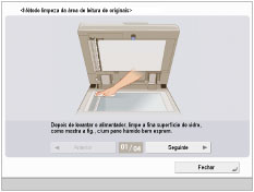 [Ajuste/Manutenção] → [Manutenção] → [Método limp. da área de leitura de originais].
