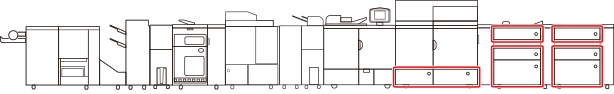Não suba o elevador no interior do deck para papel com o interruptor de alimentação principal ligado, pois tal pode causar avarias ou danos na máquina. Se precisar de subir o elevador, caso deixe cair algum objeto por exemplo, desligue o interruptor de alimentação principal com o deck para papel aberto. Para saber como encerrar a máquina, consulte " Encerramento da máquina". ![]() Se o deck para papel selecionado não estiver bem inserido na máquina, também aparece um ecrã a pedir para colocar papel. Certifique-se de que o deck para papel está na posição correta. Não coloque os seguintes tipos de papel no deck. Se o fizer, o papel pode encravar. Papel muito enrolado ou vincado Papel muito fino Papel grosso (mais de 400 g/m2) Papel fino (menos de 60 g/m2) Papel que tenha sido impresso numa impressora de transferência térmica Verso do papel que tenha sido impresso numa impressora de transferência térmica Quando a quantidade de papel não for suficiente na origem de papel, a utilização de papel revestido com uma gramagem igual ou inferior a 85 g/m2 poderá causar enrugamento do papel ou cantos dobrados. Evite a utilização de papel quando for exibido para a quantidade restante de papel. Se o papel ficar enrugado quando é alimentado numa orientação vertical, alimente o papel na direção horizontal.Separe bem as folhas de papel antes de as colocar. Papel fino, reciclado, pré-perfurado, grosso, transparências, película transparente, película translúcida e separadores devem ser cuidadosamente separados antes de serem colocados no tabuleiro. Nunca coloque papel nem outros itens na parte vazia do deck para papel junto da pilha de papel. Se o fizer, o papel pode encravar. Se estiver a imprimir no modo Agrafar, não retire as folhas impressas que ainda não foram agrafadas. (A máquina retoma a impressão e o agrafamento depois de retirar o papel encravado.) |