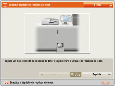 Este procedimento não é necessário se as instruções para substituir o depósito de resíduos de toner forem apresentadas no visor do painel digital. |