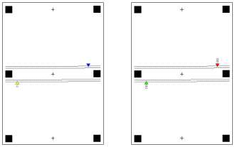 Limpe o vidro de exposição e a parte debaixo do alimentador antes do ajuste. (Consulte "Os originais não são lidos corretamente (Limpeza do vidro de exposição)".) Antes de ajustar, imprima a folha de guia (A3 ou 11" x 17") nas seguintes condições. Pode não ser possível um ajuste preciso se a folha de guia não for impressa corretamente. Selecione o mesmo tamanho da folha de guia. Utilize papel com uma gramagem superior a 200 g/m2. Especifique o rácio de zoom como 100%. Se uma extremidade da página de teste estiver incorretamente cortada ou dobrada, ou a imagem não estiver corretamente impressa na página de teste, pode ser apresentada a mensagem "Coloque corretamente a página de teste no vidro de exposição." durante o processo de digitalização. Não é possível efetuar corretamente o ajuste com alguns tipos de papel, como papel texturado com uma superfície rígida ou papel colorido. Se o ajuste não for efetuado corretamente quando [Utilizar scanner] está selecionado, selecione [Não utilizar scanner]. |