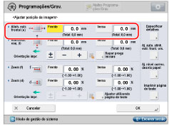 Quando voltar a abrir o ecrã, depois de o ter fechado carregando em [OK], os valores apresentados no ecrã voltam a "0". Contudo, o valor ajustado continua válido em cada campo Total. Se repetir o passo, verifique o comprimento de "e" na nova página de teste e introduza o novo valor. |