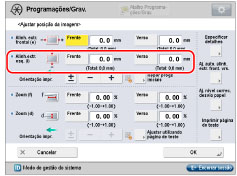 Quando voltar a abrir o ecrã, depois de o ter fechado carregando em [OK], os valores apresentados no ecrã voltam a "0". Contudo, o valor ajustado continua válido em cada campo Total. Se repetir o passo, verifique o comprimento de "i" na nova página de teste e introduza o novo valor. |