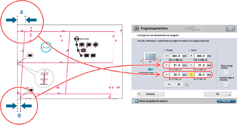 Esta programação permite corrigir o formato da imagem, igualando o comprimento de "a" e "g" com a extremidade do papel, quando a imagem é impressa como um paralelograma.