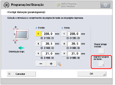 Volte ao ecrã <Corrigir distorção (paralelogramo)> → introduza o comprimento medido das marcas [G] e [A] para a frente e o verso.