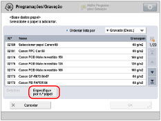 Carregue em [Base dados papel] → [Especifique por n.º papel].