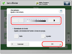 Quando fizer a leitura, pode ajustar a densidade para o nível mais adequado à cor do original. Também pode ajustar a densidade do fundo no caso de originais como papel colorido.