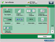 Após o envio de um trabalho, é possível memorizar as programações de envio à exceção dos destinos especificados. Para cancelar as programações, carregue em .Para enviar outros trabalhos com as mesmas programações, é necessário especificar destinos para os mesmos, uma vez que o destino especificado para o trabalho anterior não é memorizado. |
