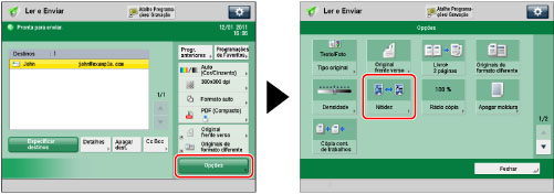 Especifique o destino → carregue em [Opções] → [Nitidez].