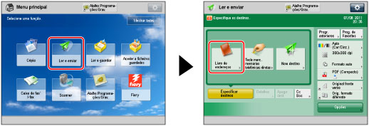 [Alterar livro end.] só aparece se gravar o livro de endereços remoto e registar o servidor LDAP. Se gravar apenas o livro de endereços remoto na máquina, aparece, [A livro de end.remoto]. |