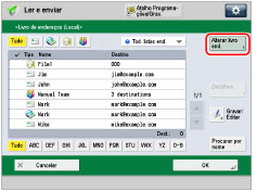Se o idioma do visor programado para a máquina servidor e para a máquina cliente for diferente, o livro de endereços pode ter carateres truncados. |