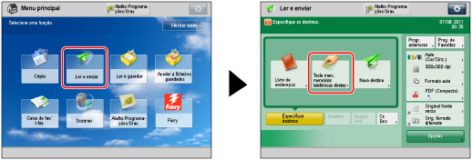 → [Ler e Enviar] → [Tecla marc. memórias telefónicas diretas].