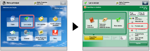 → [Ler e Enviar] → especifique o destino → carregue na tecla de formato de leitura.