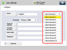 Se programar a opção [Ativar/desativar idioma/teclado] para "Ligado", o nome do anfitrião e o caminho da pasta do destino de servidor de ficheiros podem não ser apresentados corretamente e pode não conseguir procurá-los.(Consulte "Ativar a Comutação idioma/teclado".) |