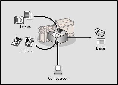 Permite que os utilizadores guardem ficheiros lidos com esta máquina ou dados enviados de um computador pessoal através do controlador da impressora. Pode imprimir o documento guardado sempre que for necessário, utilizando as programações desejadas. Além disso, pode converter o formato de ficheiro dos documentos noutro formato (como, por exemplo, PDF) para os enviar por correio eletrónico utilizando a função Enviar.