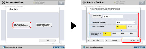 <Comprimento da chave (bits)>:Se selecionar [RSA] em <Algoritmo de chave>, selecione [512], [1024], [2048] ou [4096].
