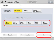 Selecione um item para <Versão do servidor LDAP e código de carateres> → carregue em [OK].