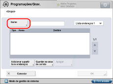 O endereço de grupo que introduzir é guardado na lista de endereços selecionada.