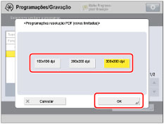 Esta programação só é válida se o formato de ficheiro estiver programado para [PDF (Ltd. Cor)] em "Ler e Enviar" ou "Ler e Guardar". Esta programação é válida quando [Texto] estiver selecionada em [Tipo de original], mesmo que selecione [Prioridade qualidade] em [Nível qualid. imagem p/Ltd. Cor/Compacto].(Consulte "Nível de qualidade da imagem com cores limitadas/alta compressão".) |