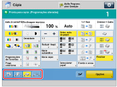 Se a opção [Programações do ecrã de cópia] estiver programada para [Cópia rápida], pode gravar as teclas de atalho apresentadas no ecrã Cópia.