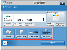 Pode gravar modos nas teclas de atalho apresentadas no ecrã Cópia. Pode gravar até cinco teclas pretendidas de [Opções] e [Prog. de Favoritos].