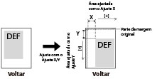 A posição de impressão no verso da página é ajustada na vertical ou na horizontal para o valor especificado no valor da programação.