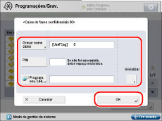 (teclas numéricas). Carregue em [Confirmar] → reintroduza o PIN para confirmação → carregue em [OK]. Pode deixar o PIN em branco. Não pode guardar um PIN só com zeros, como <0000000>.