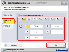 Pode selecionar [Todos os dias] para Hora de início do bloqueio de memória e [Especificar dias] para Hora de fim do bloqueio de memória e vice-versa. |