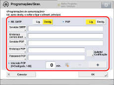 Carregue em [Ligado] para <RE. SMTP> → [Desligado] para <POP>.