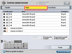[Programações gestão de tipos de papel] aparece se iniciar sessão como administrador. |