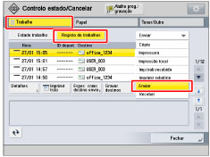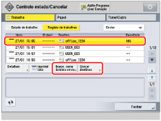 [Espec. como destino envio]: | Apresenta um ecrã onde é introduzido o endereço do trabalho selecionado. Verifique o endereço → carregue em [OK] para ver o ecrã Enviar. |
